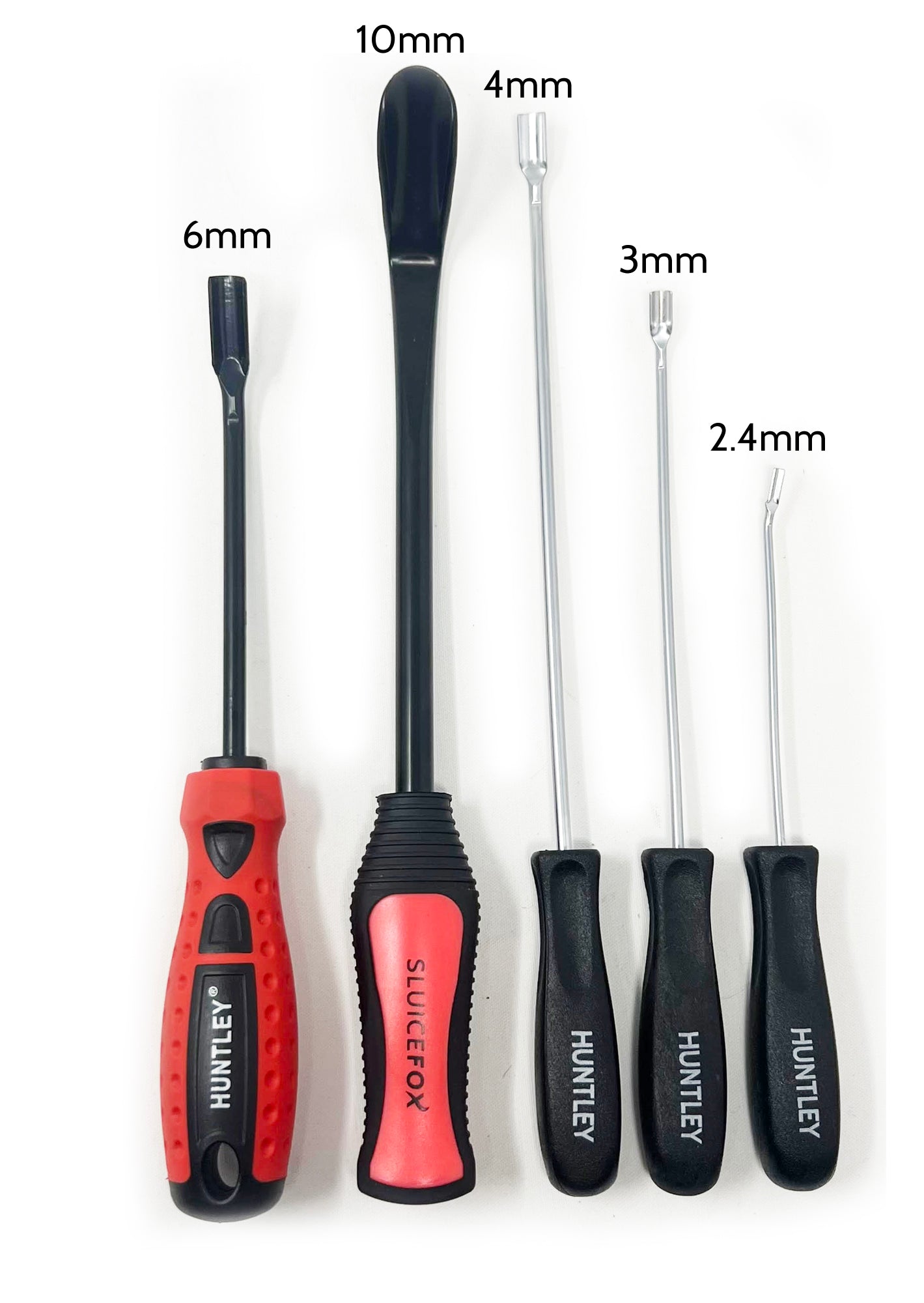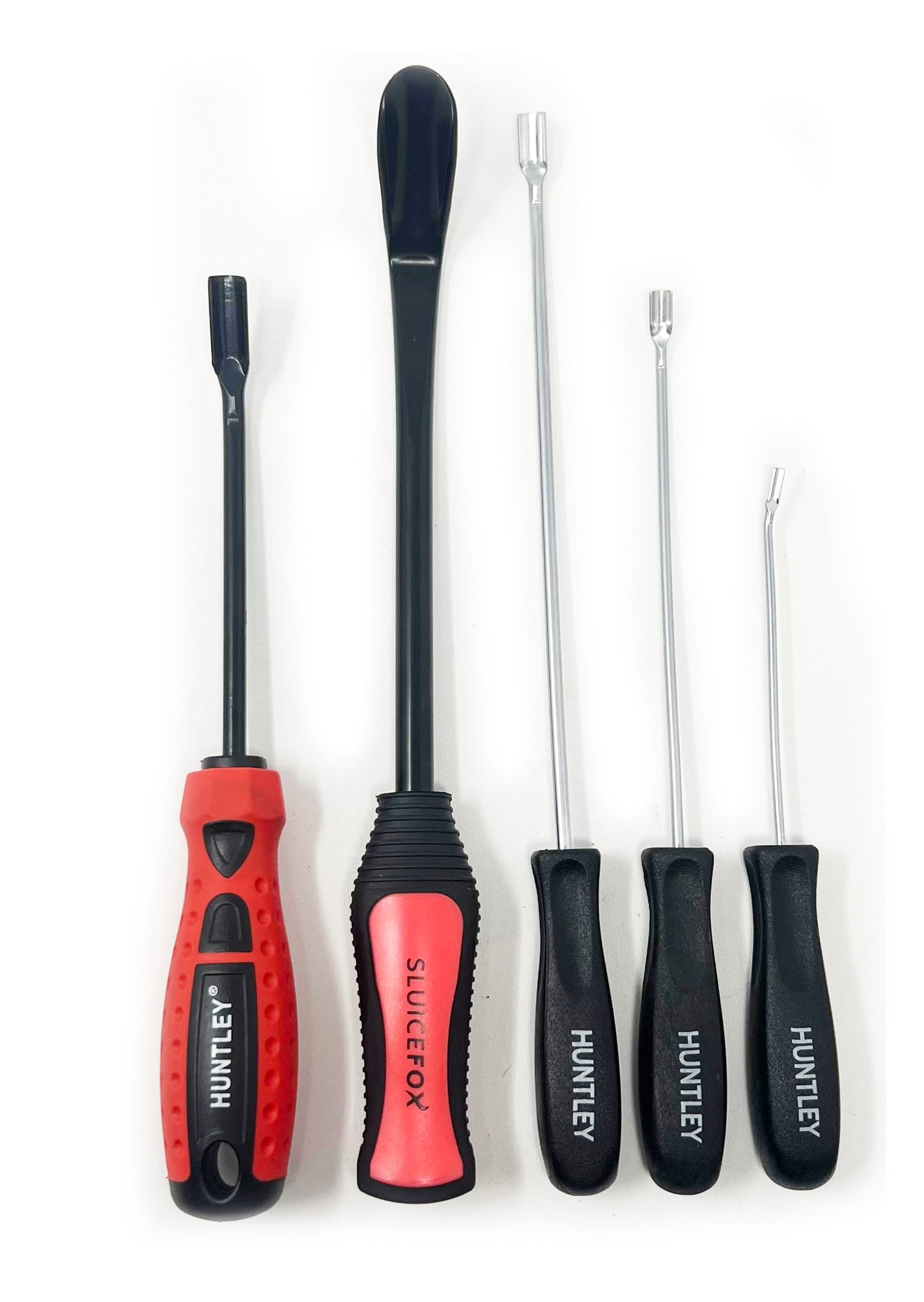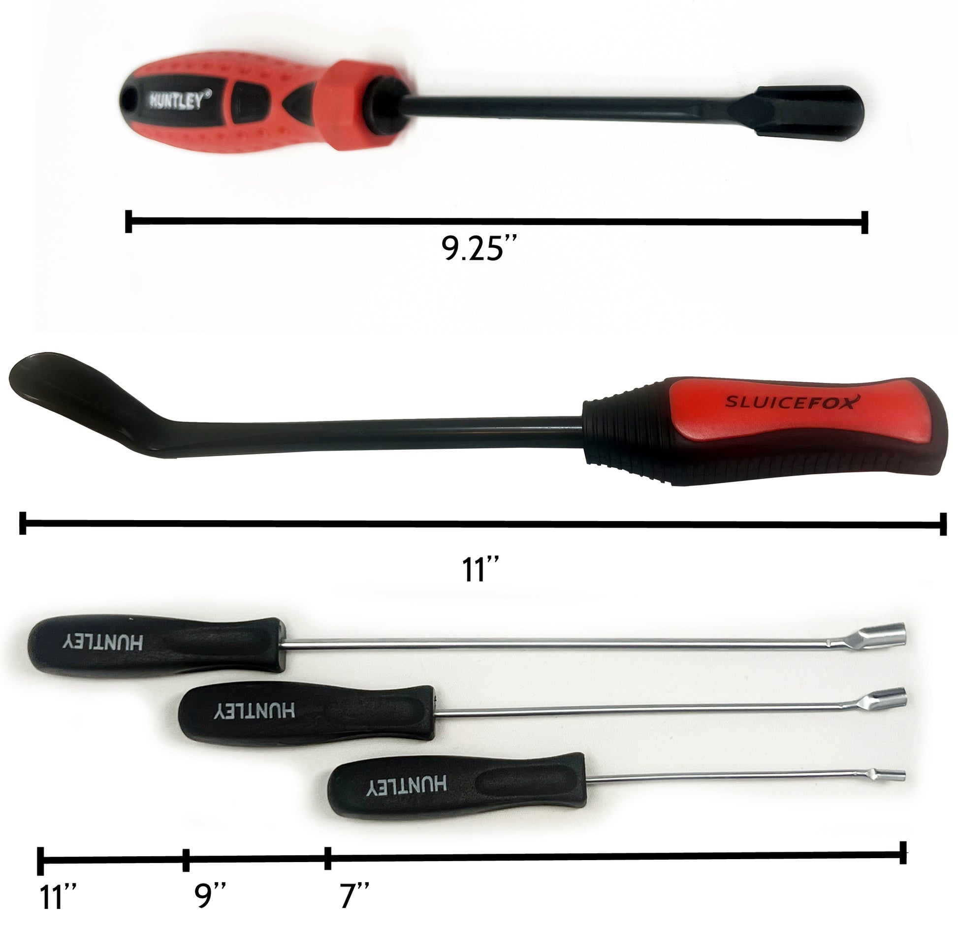 • This listing contains variations of the Sluice Fox original Huntley® spoon tool coming in options: 6mm x 235mm, 10mm x 280mm, a mini 3 pack (2.4mm, 3mm, 4mm diameter shafts with lengths 7”, 9”, and 11”), or all 5 pieces!