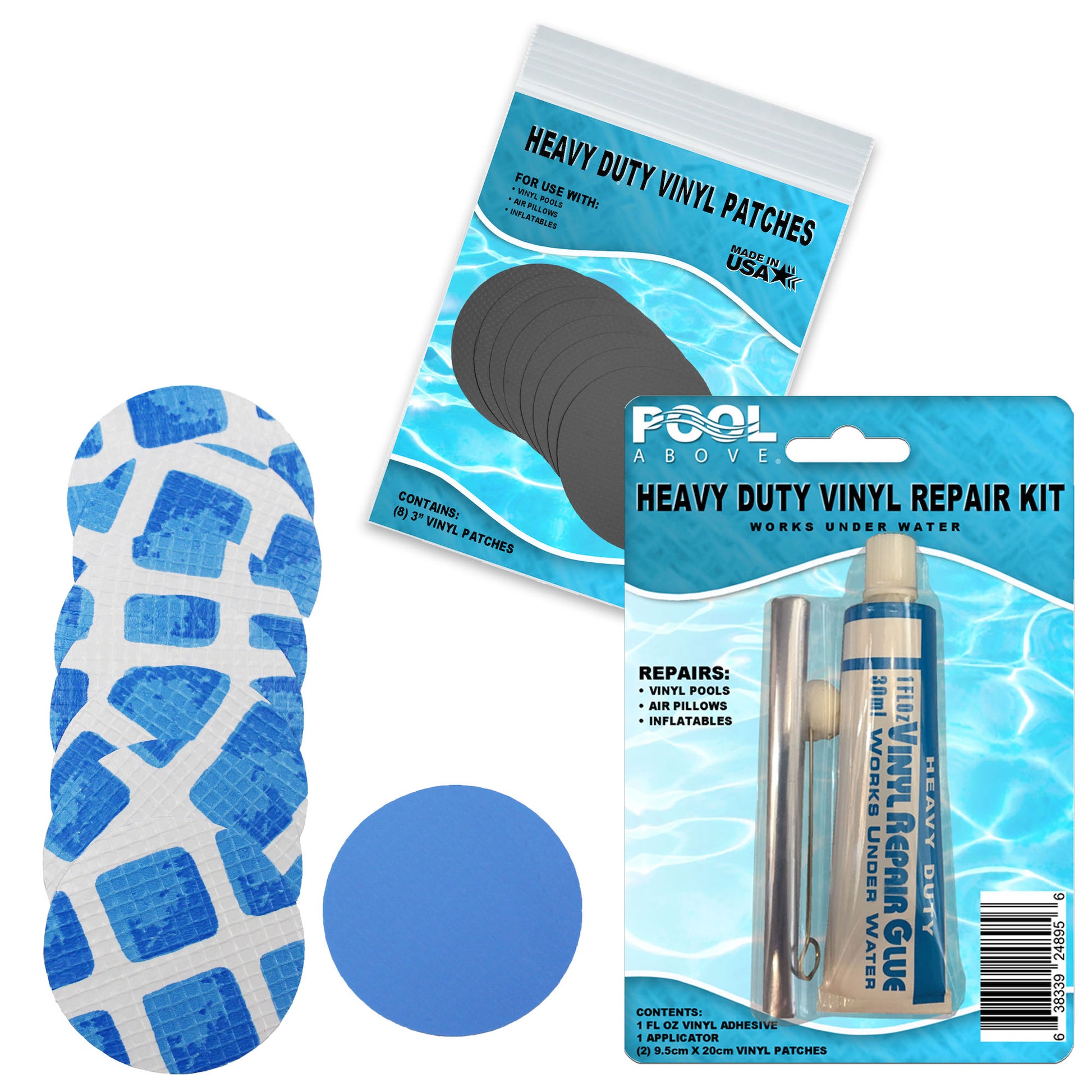 All-in-One Repair Kit for Above-Ground Pools | Fast, Underwater-Capable Peel-and-Stick OR Adhesive Glue-Down Vinyl Patches & for Easy Set and Frame Pools