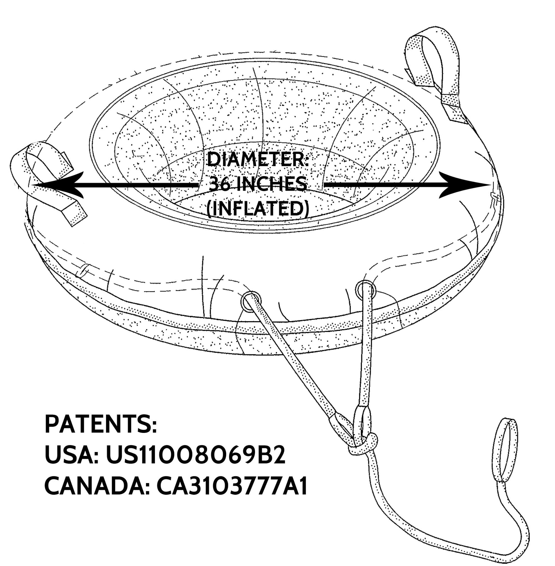 • Product specs: Designed and manufactured in USA - Includes heavy duty 1100D slick industrial vinyl bottom using RapidGlide anti-friction technology. 2 sewn-in handles; patented tow loop system secures tube and cover under high-torque conditions. Not intended for towing behind a motorized vehicle.