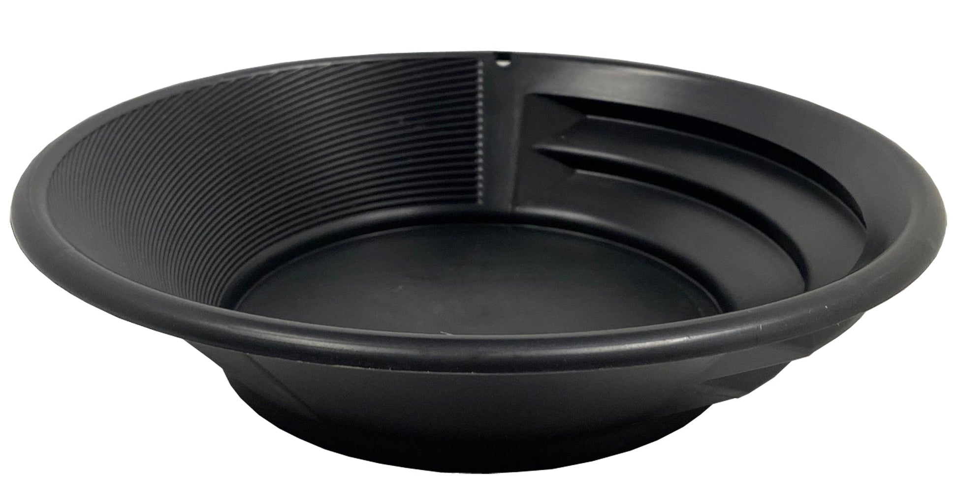 • 11" gold pan nests perfectly inside the sifting pan. Full 11 inch diameter, 45 degree sides, and a deep, 3 inch total height. Features a generous vertical gold trap around a 6.5 inch bottom of the pan. Dual riffles for all paydirt conditions.